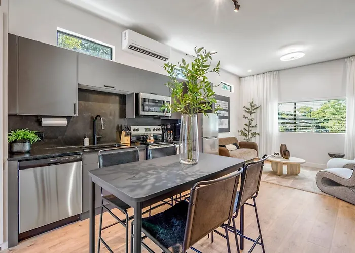 What famous landmarks can we find near Nature-Inspired Living N Houston'S Trendy East End apartment?
